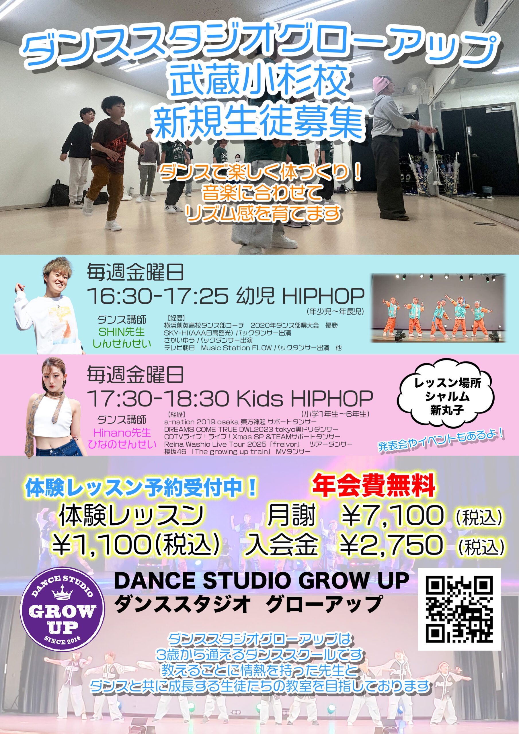 ダンススタジオグローアップ武蔵小杉校のレッスンスケジュールです!
